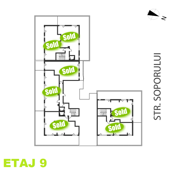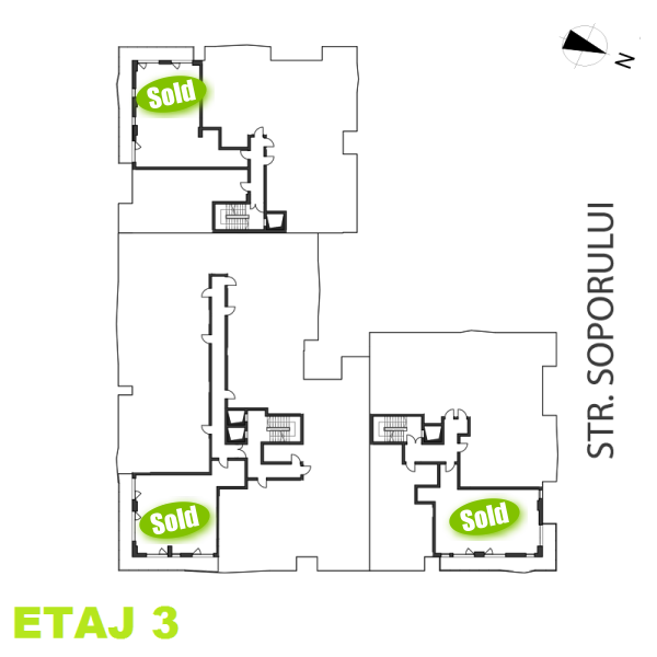 Apartamente cu 3 camere disponibile pe fiecare etaj in noul imobil B1 din Grand Park Residence. Click pe numar de apartament pentru a vizualiza compartimentarea interioara. Apartamentele marcate cu sold nu mai sunt disponibile.